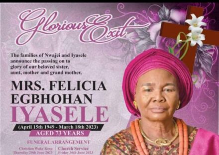 Mrs Felica Egbhohan Iyasele Glorious Exit